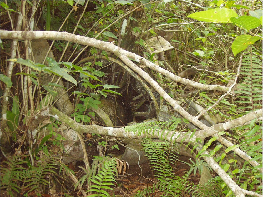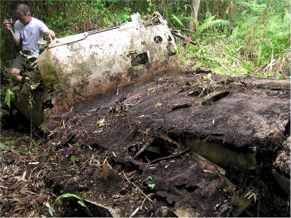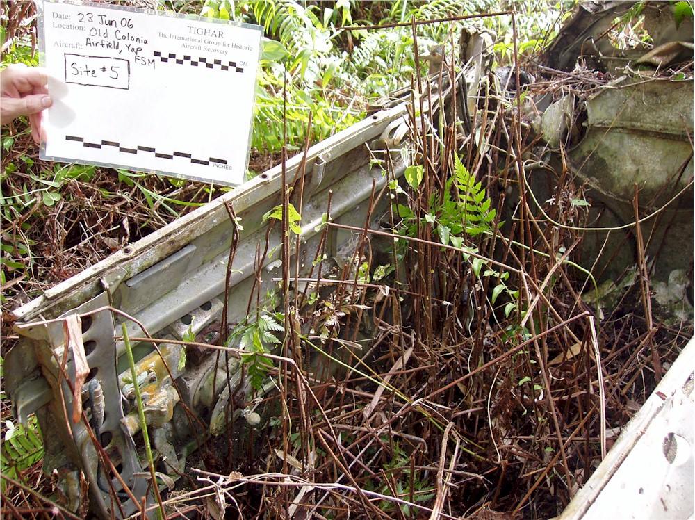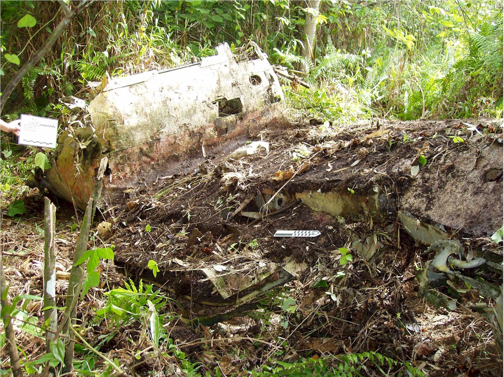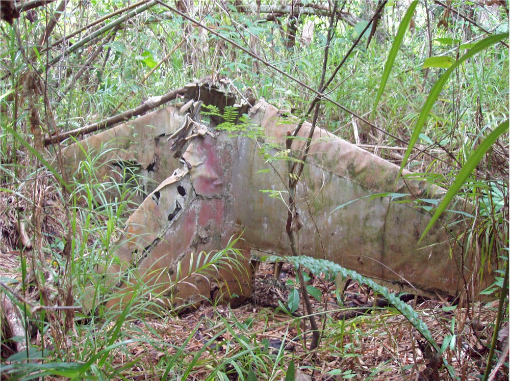 This is the right wing, outboard rear view, after clearing off the vegetation and duff.