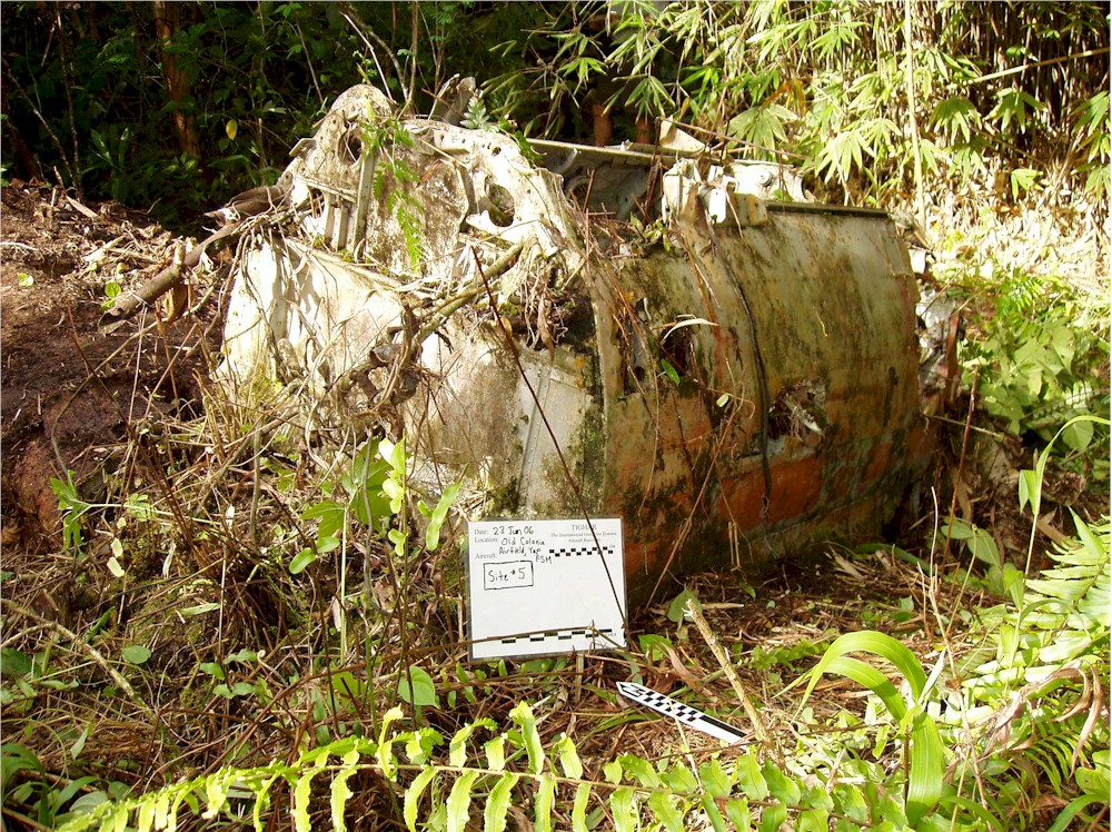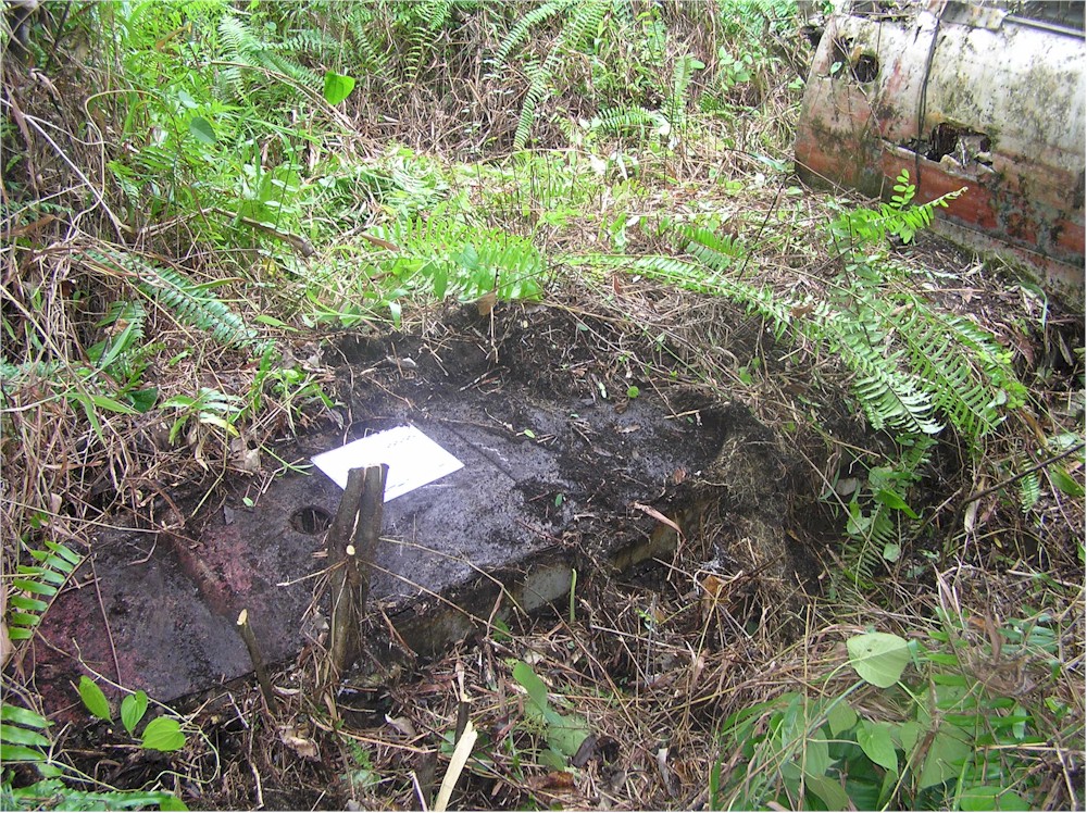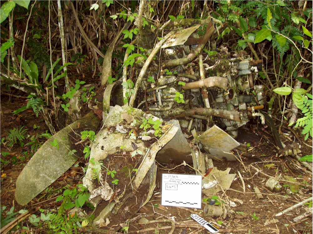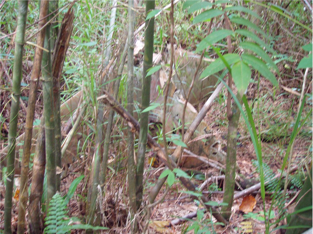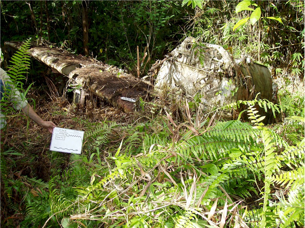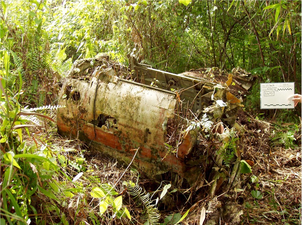 This is the right wing, outboard rear view, after clearing off the vegetation and duff.
