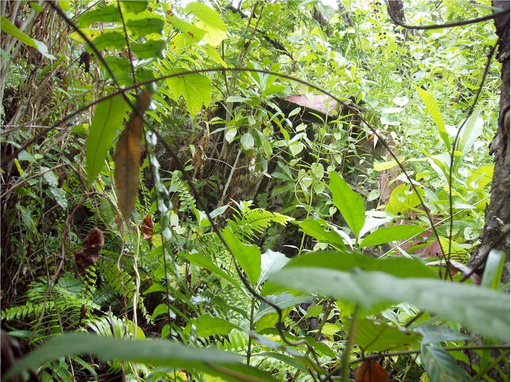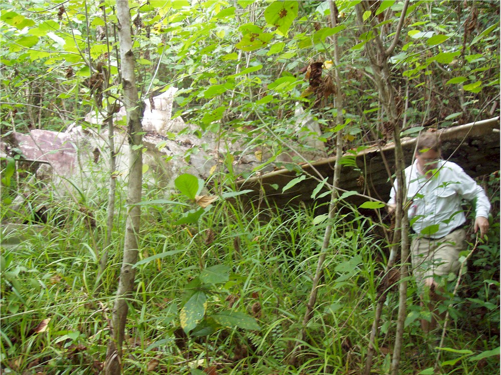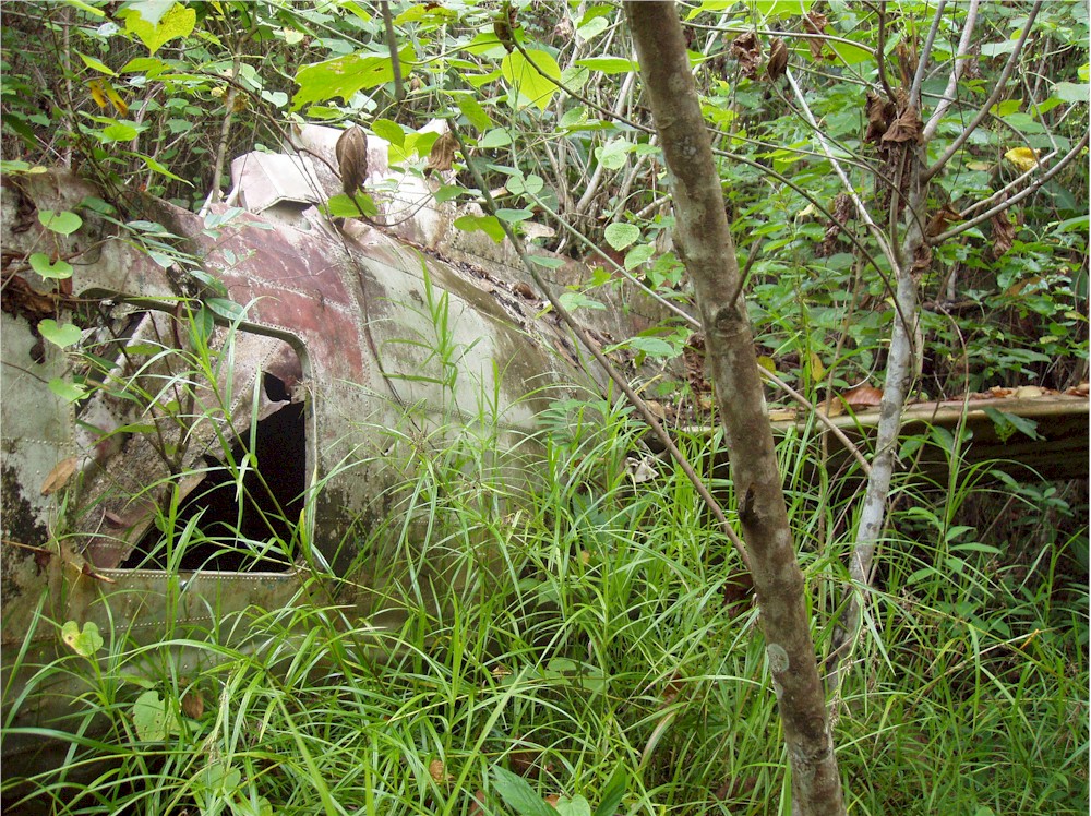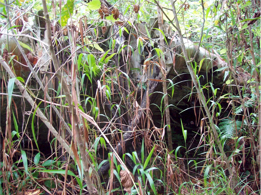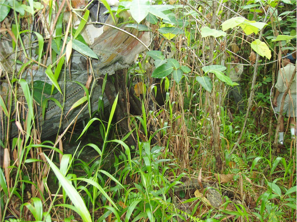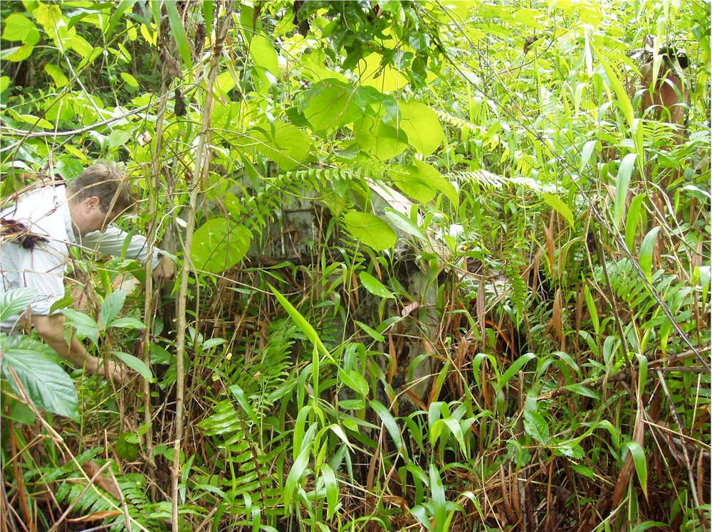 Here, stuck in the grass and the vines, I work my way around the left hand engine firewall... and they said we would not need our machetes for this hike!#@$