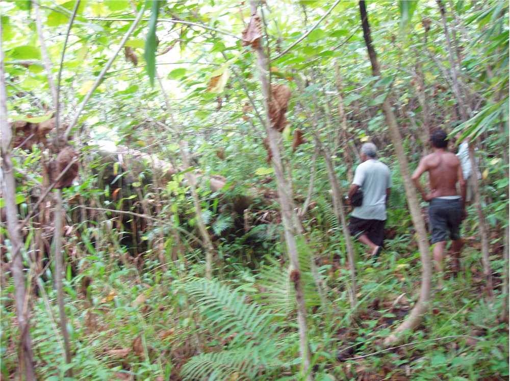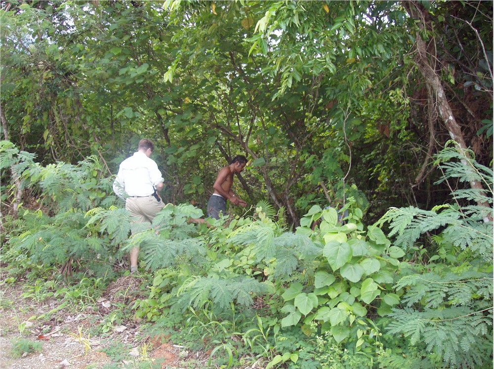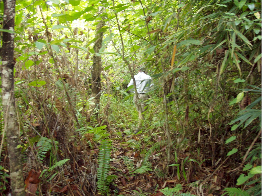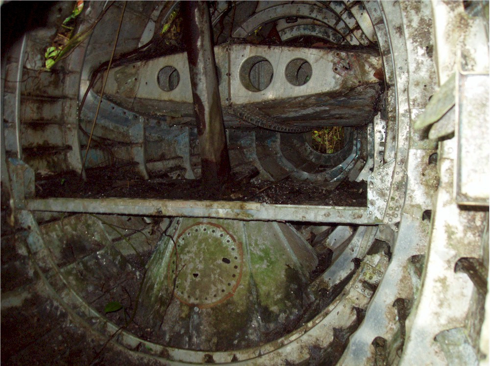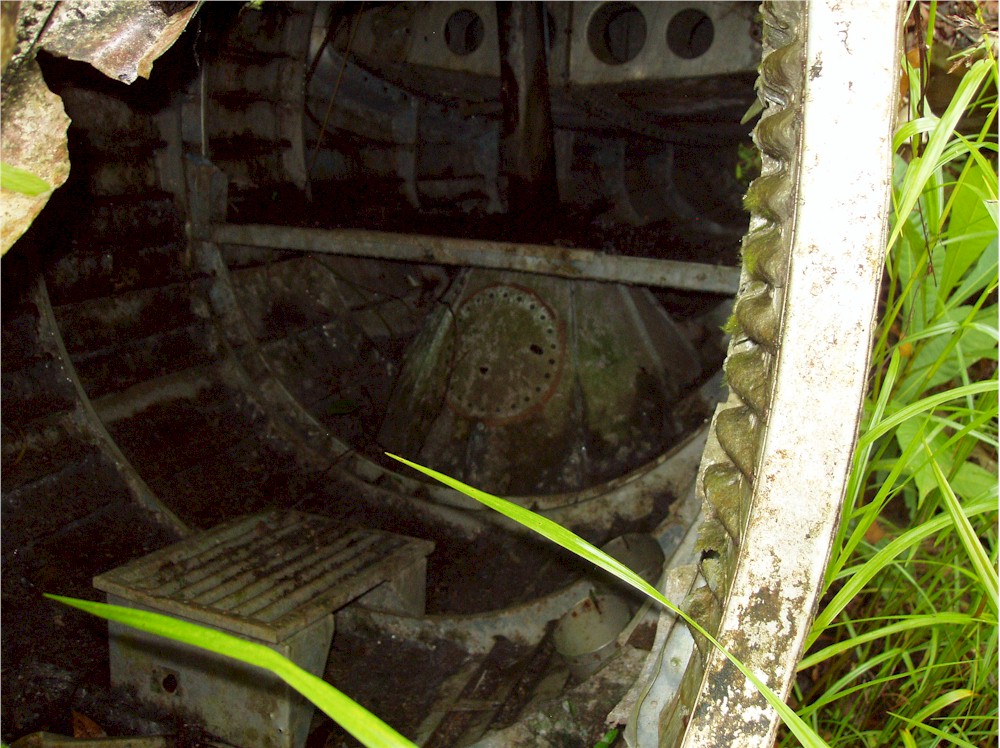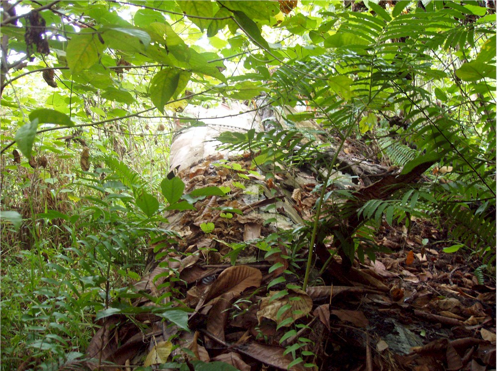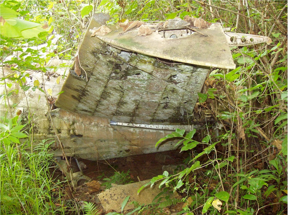 Here, stuck in the grass and the vines, I work my way around the left hand engine firewall... and they said we would not need our machetes for this hike!#@$