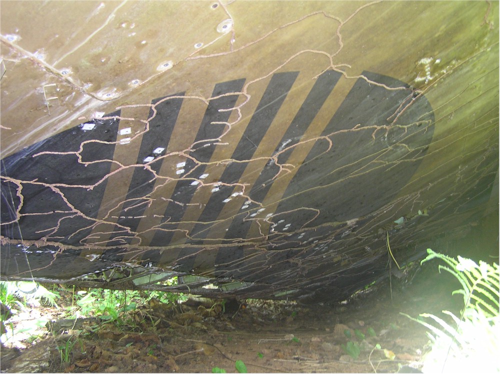 Some of the fire damage is still evident on the underside of the fuselage.